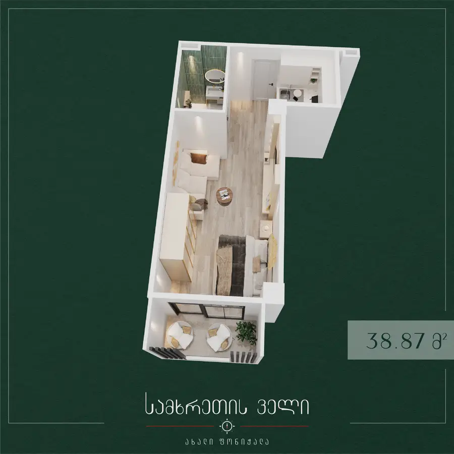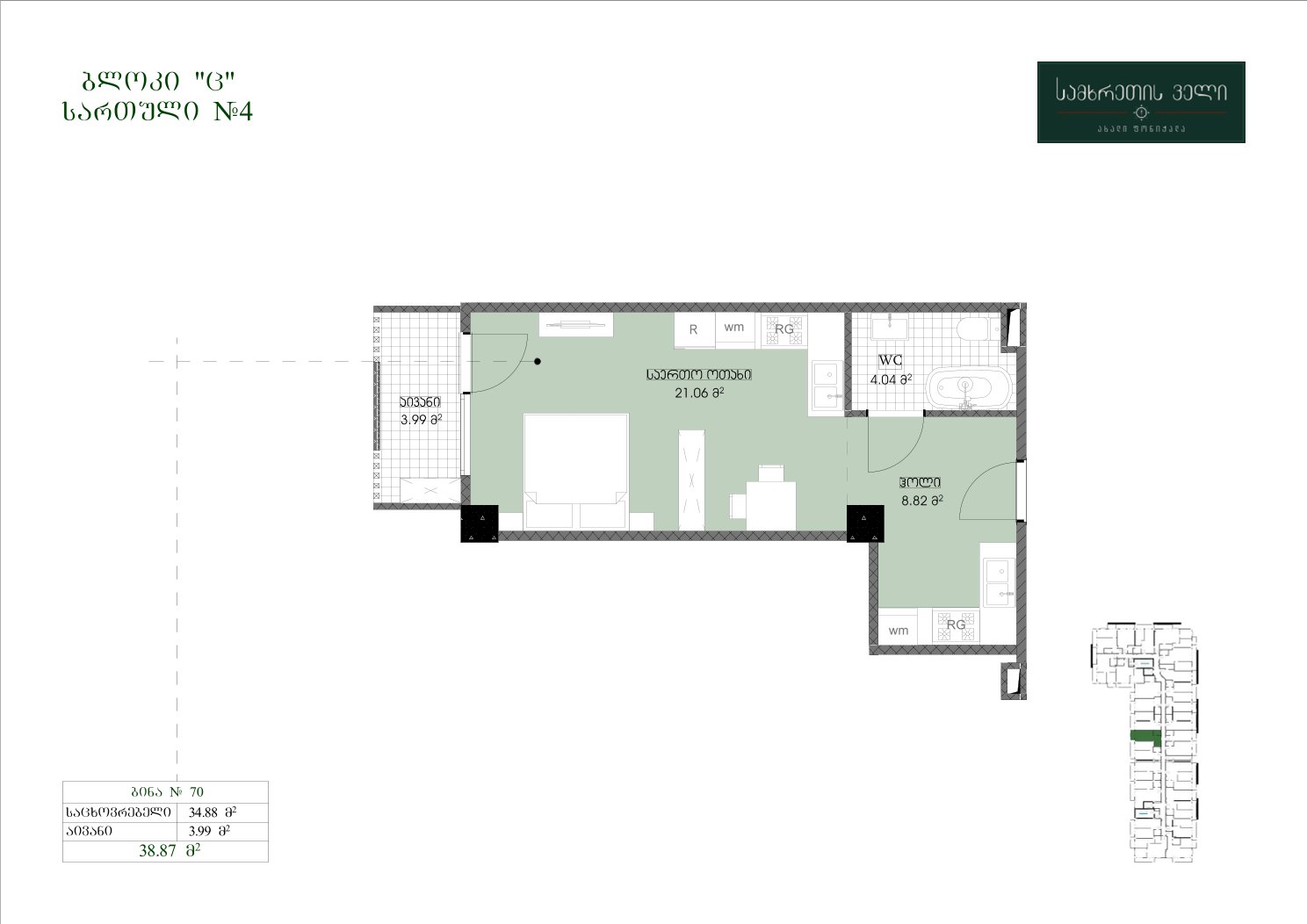 2.მისაღები ოთახი/სტუდიო: 21.06 კვ.მ