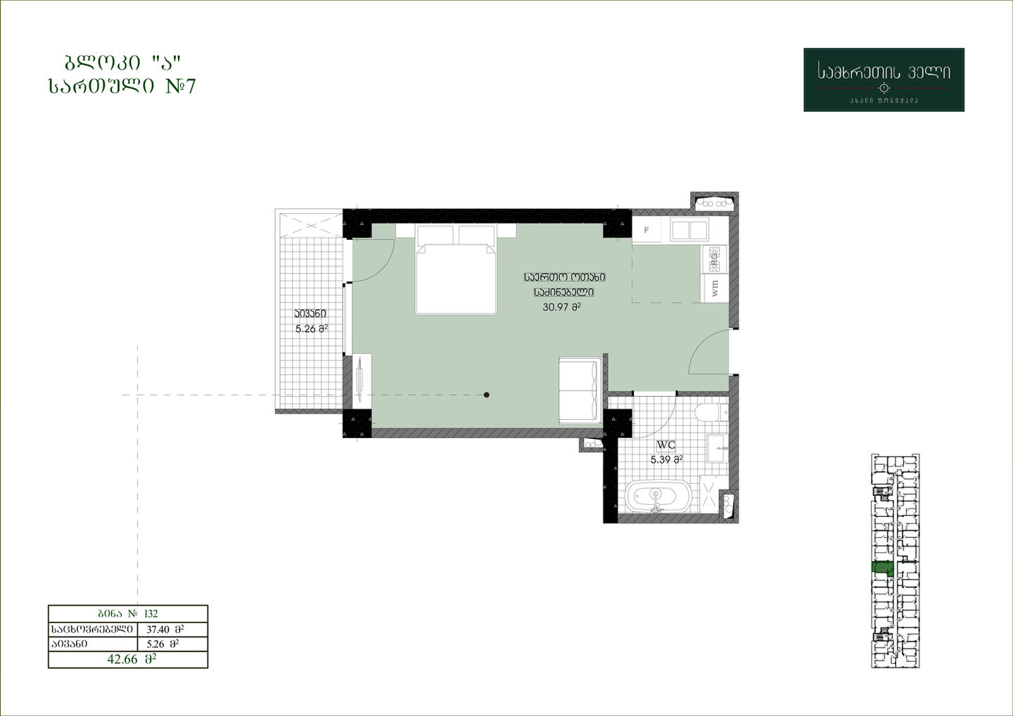 2.მისაღები ოთახი/სტუდიო/საძინებელი: 30.97 კვ.მ