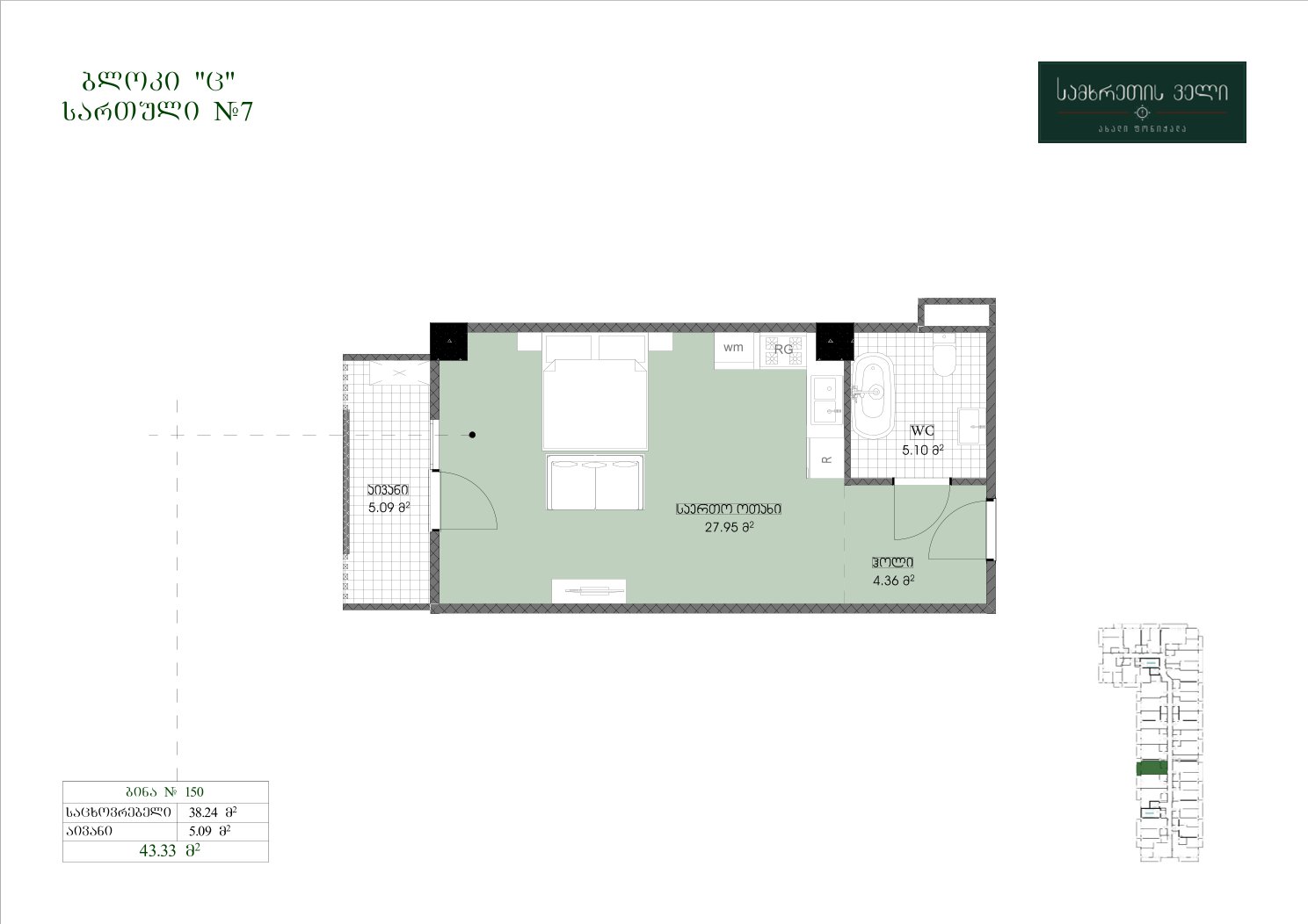 43.33 კვ.მ | სართული 7