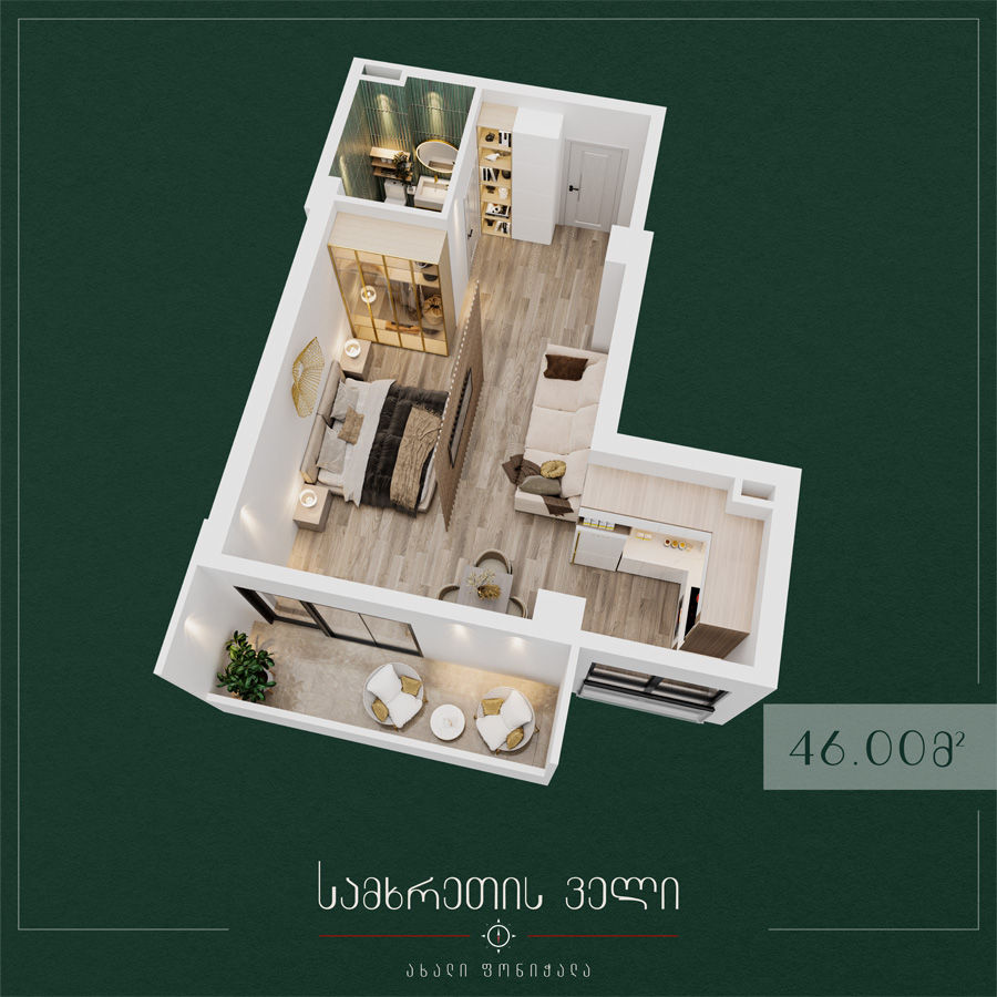 2.მისაღები ოთახი/სტუდიო/საძინებელი: 34.58 კვ.მ