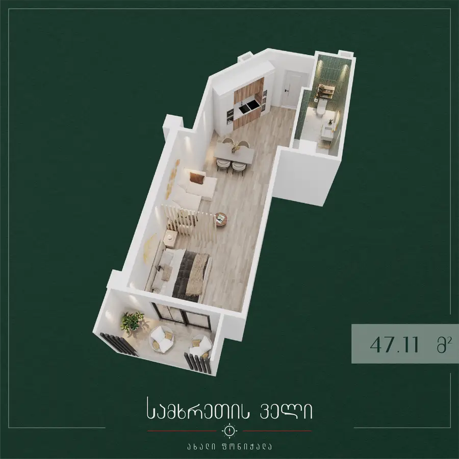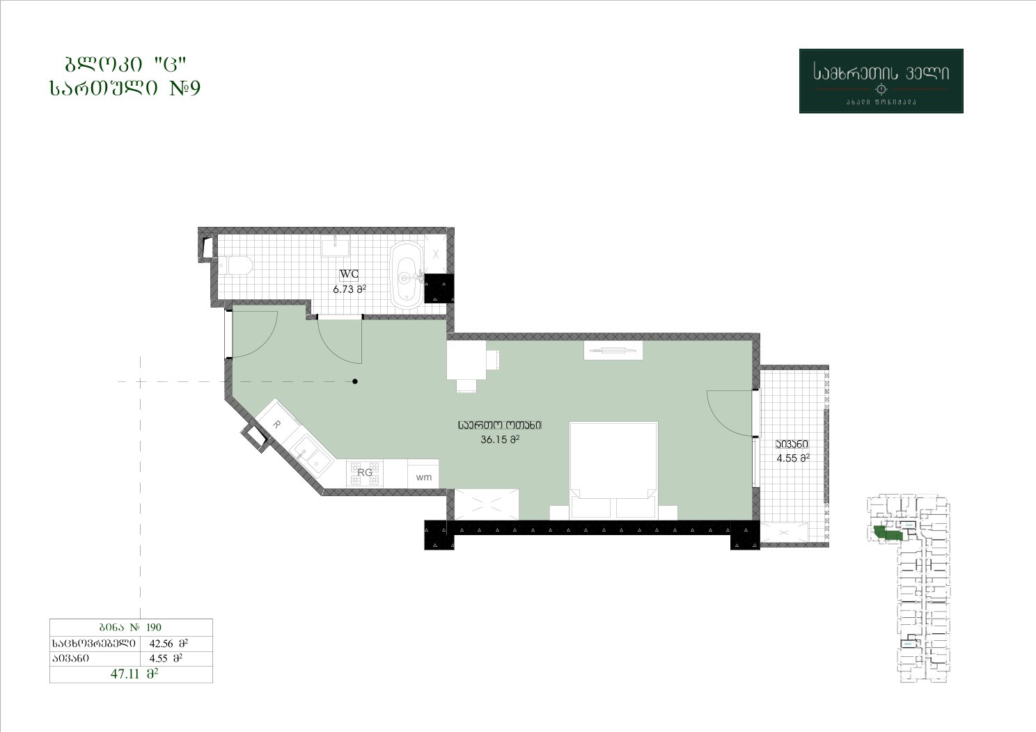 2.მისაღები ოთახი/ სტუდიო: 36.15 კვ.მ