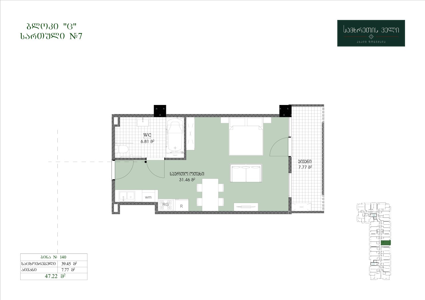 2.მისაღები ოთახი/სტუდიო: 31.46 კვ.მ