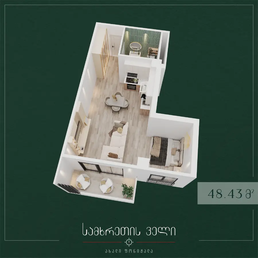 2.მისაღები ოთახი/სტუდიო: 33.41 კვ.მ