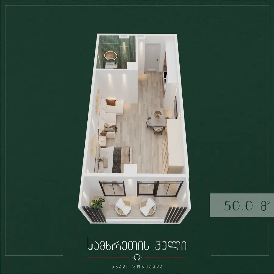 2.მისაღები ოთახი/სტუდიო: 37.70 კვ.მ