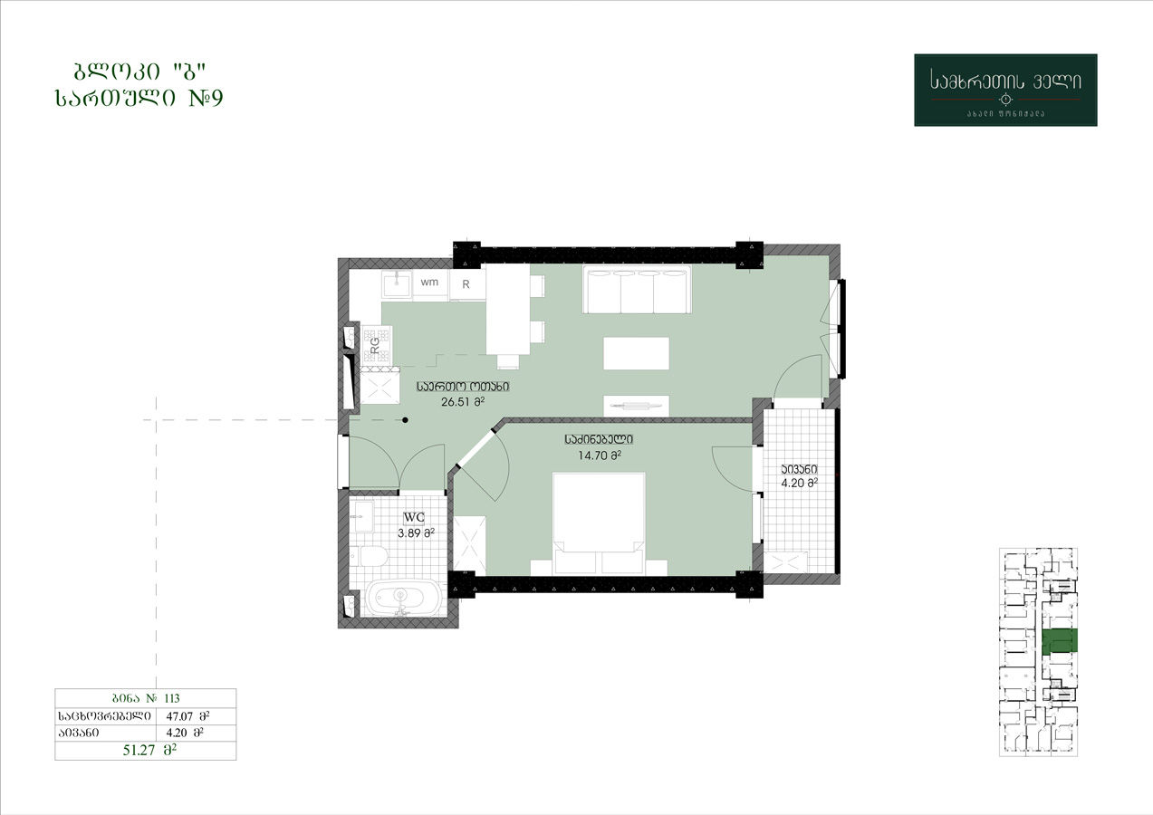 2 .მისაღები ოთახი/სტუდიო: 26.51 კვ.მ