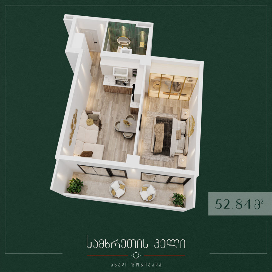 2.მისაღები ოთახი/სტუდიო: 22.53 კვ.მ