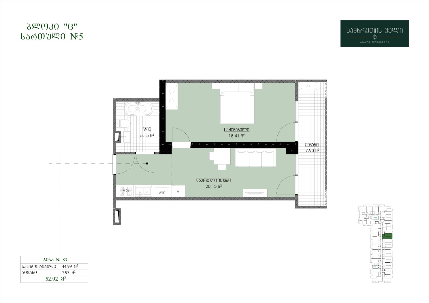 2.მისაღები ოთახი/სტუდიო: 20.15 კვ.მ