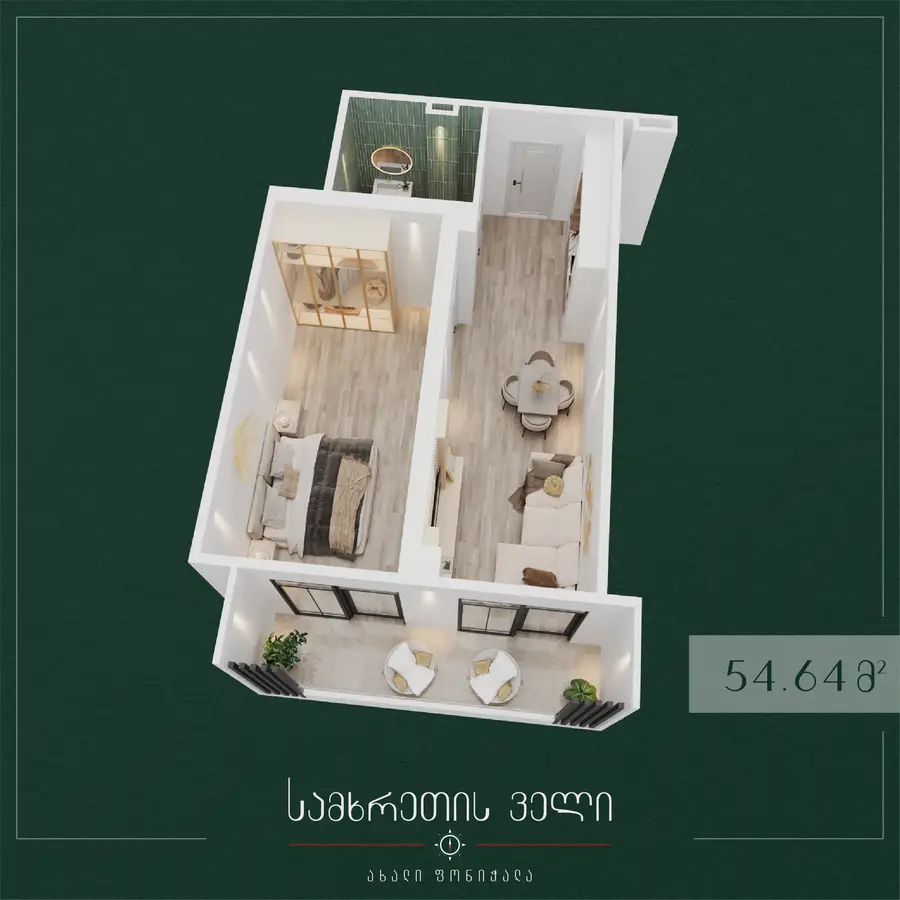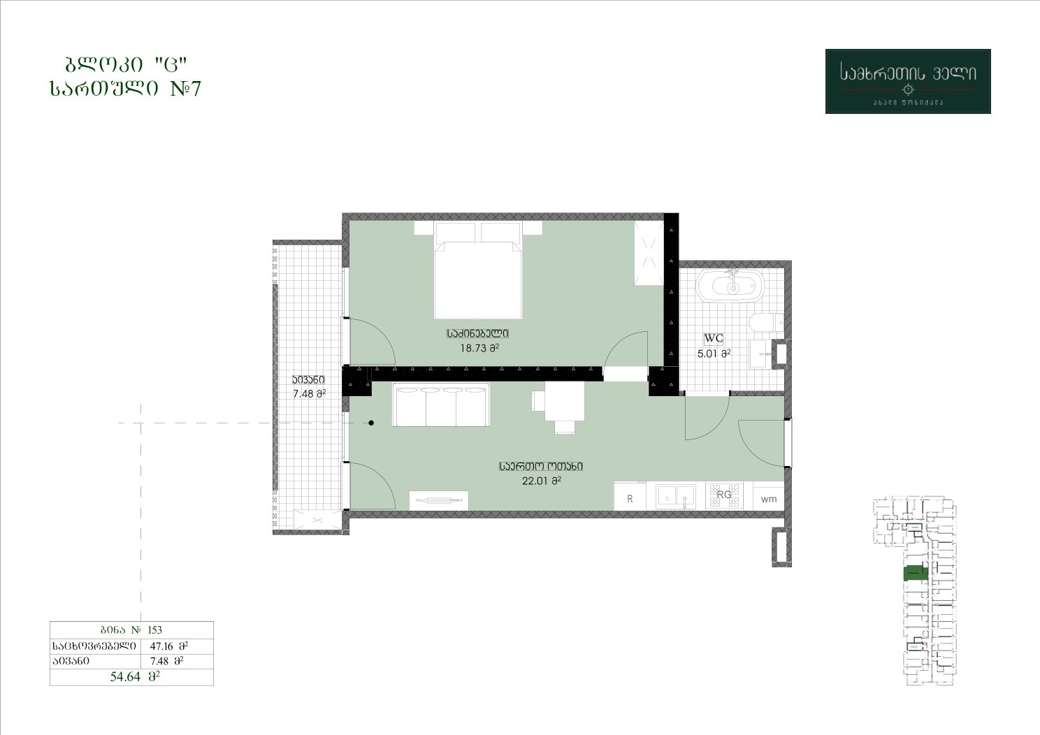 2.მისაღები ოთახი/სტუდიო: 22.01 კვ.მ