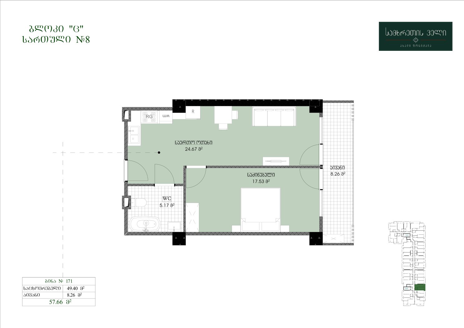 57.66 კვ.მ | მე-8 სართული