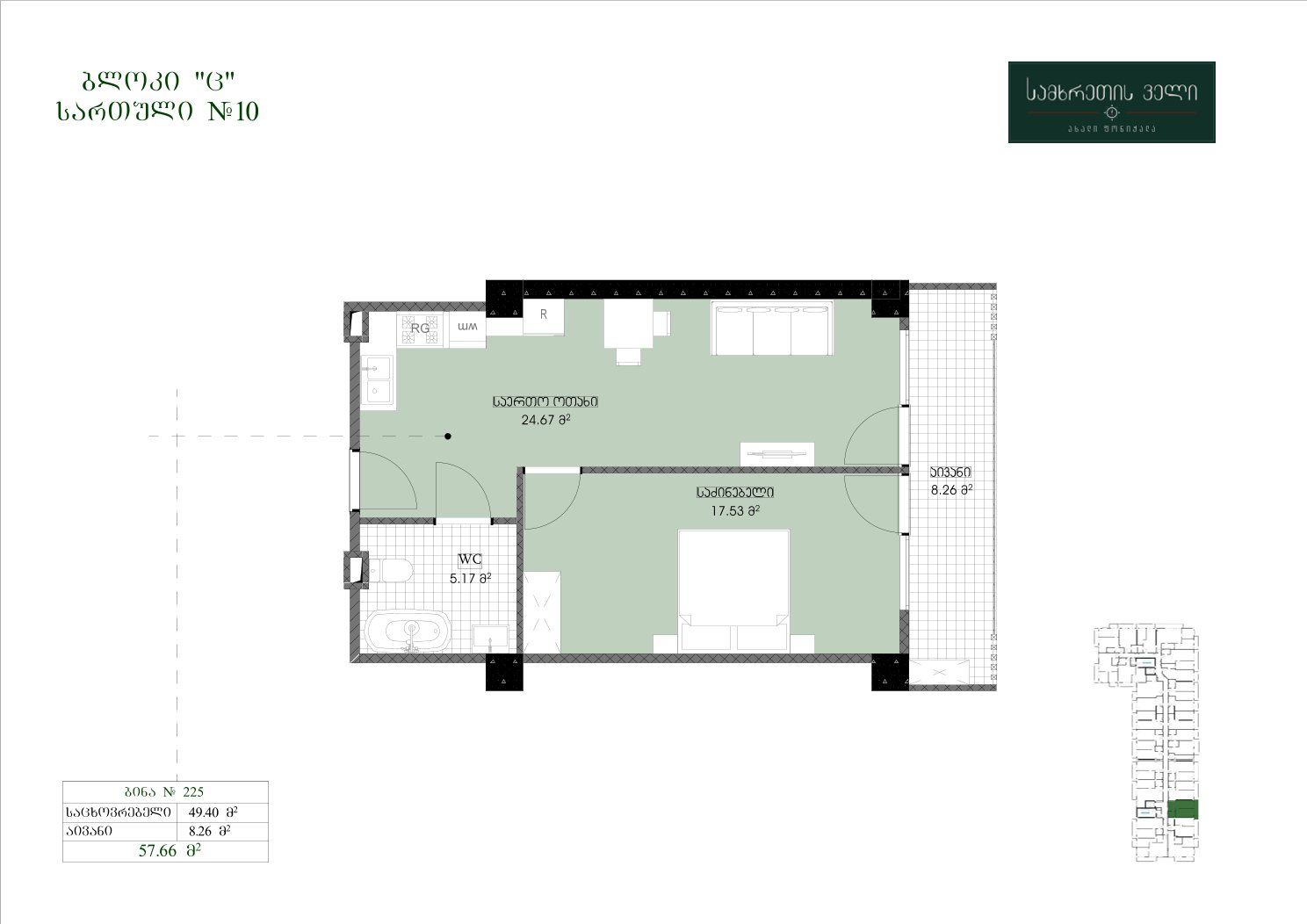 57.66 კვ.მ | სართული 10