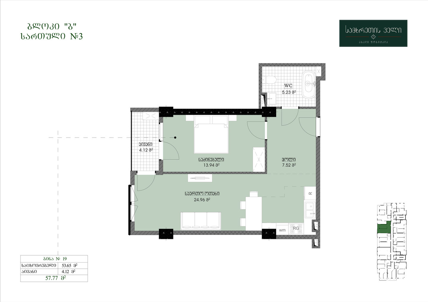 2 .მისაღები ოთახი/სტუდიო: 32.48 კვ.მ