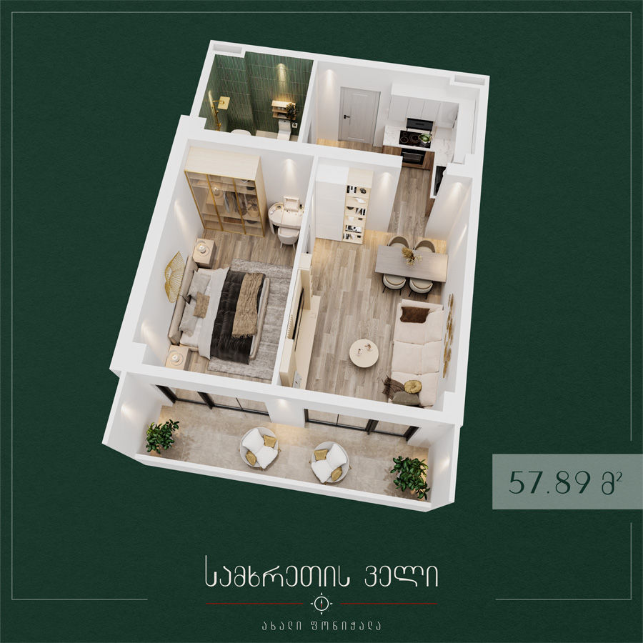 2.მისაღები ოთახი/სტუდიო: 27.43 კვ.მ