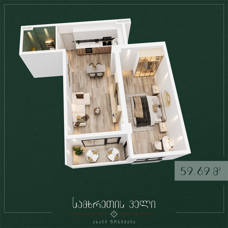 2.მისაღები ოთახი/სტუდიო: 28.12 კვ.მ