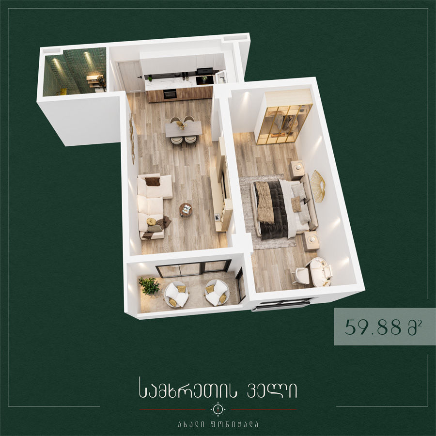 2.მისაღები ოთახი/სტუდიო: 28.22 კვ.მ