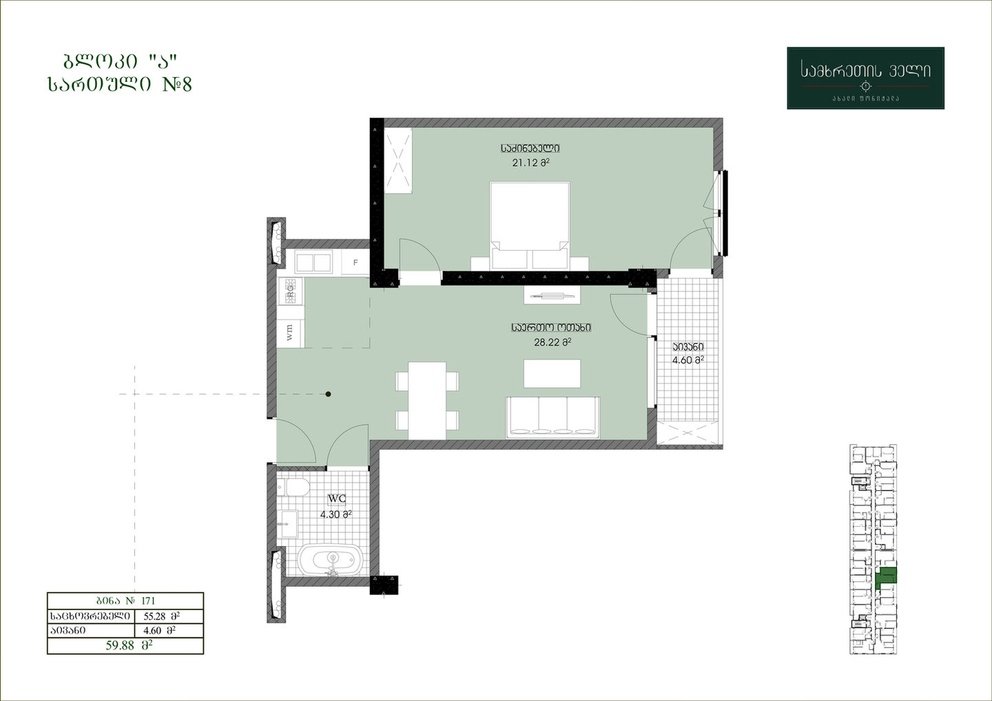 2.მისაღები ოთახი/სტუდიო: 28.22 კვ.მ