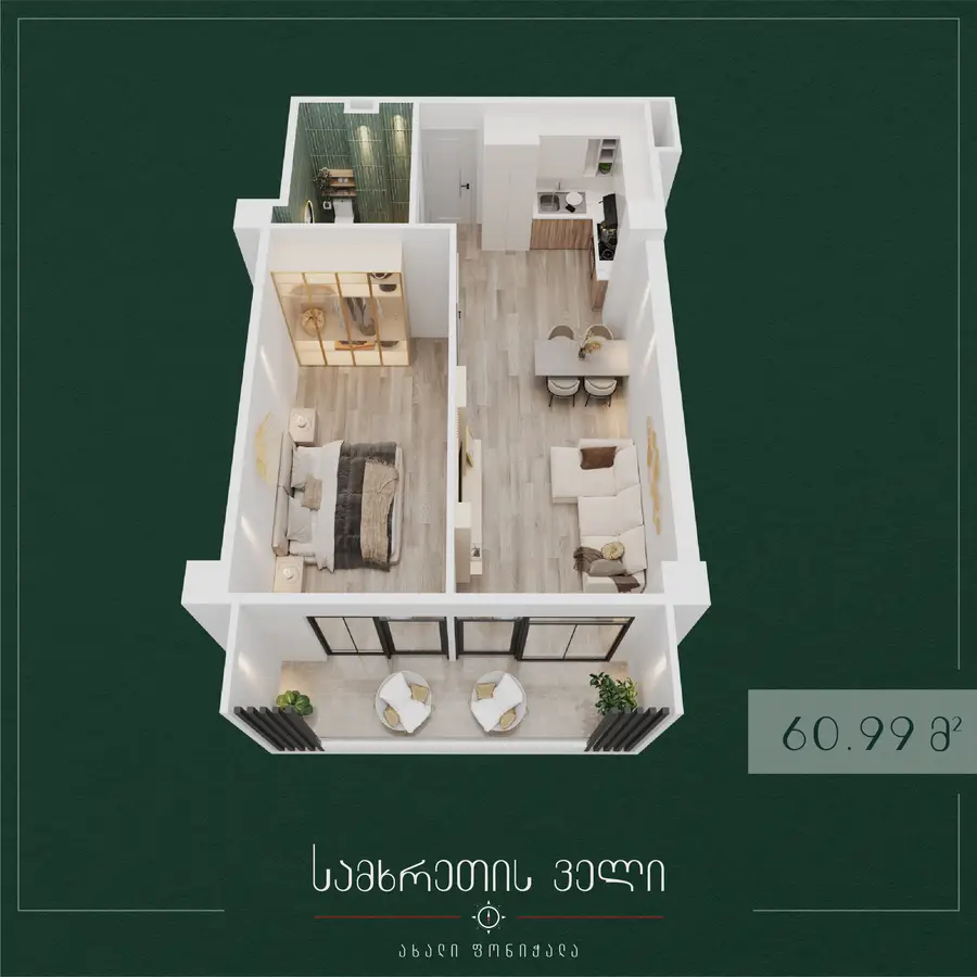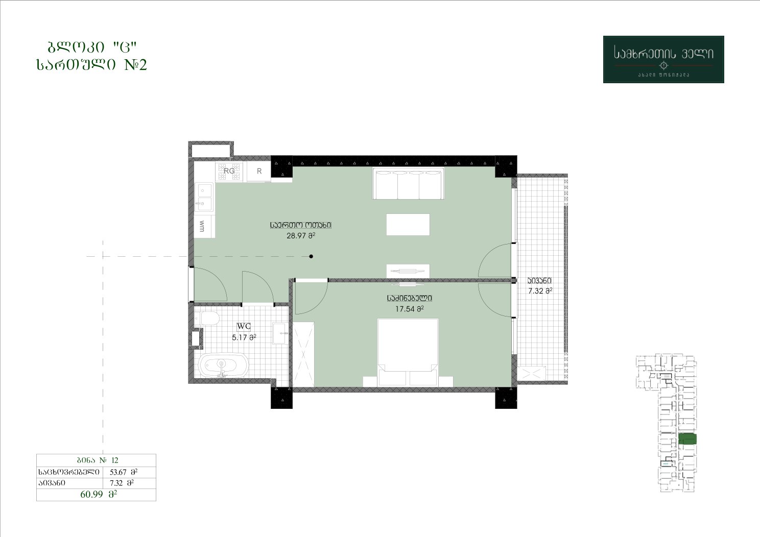 2.მისაღები ოთახი/სტუდიო: 28.97 კვ.მ