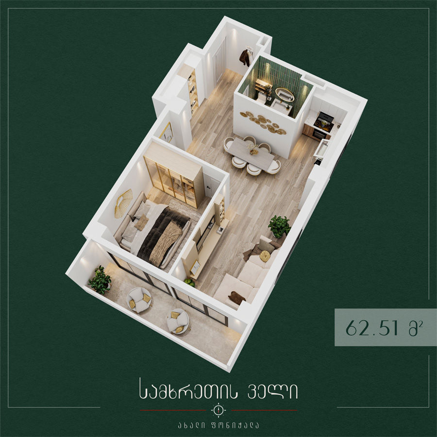 2.მისაღები ოთახი/სტუდიო: 36.71 კვ.მ