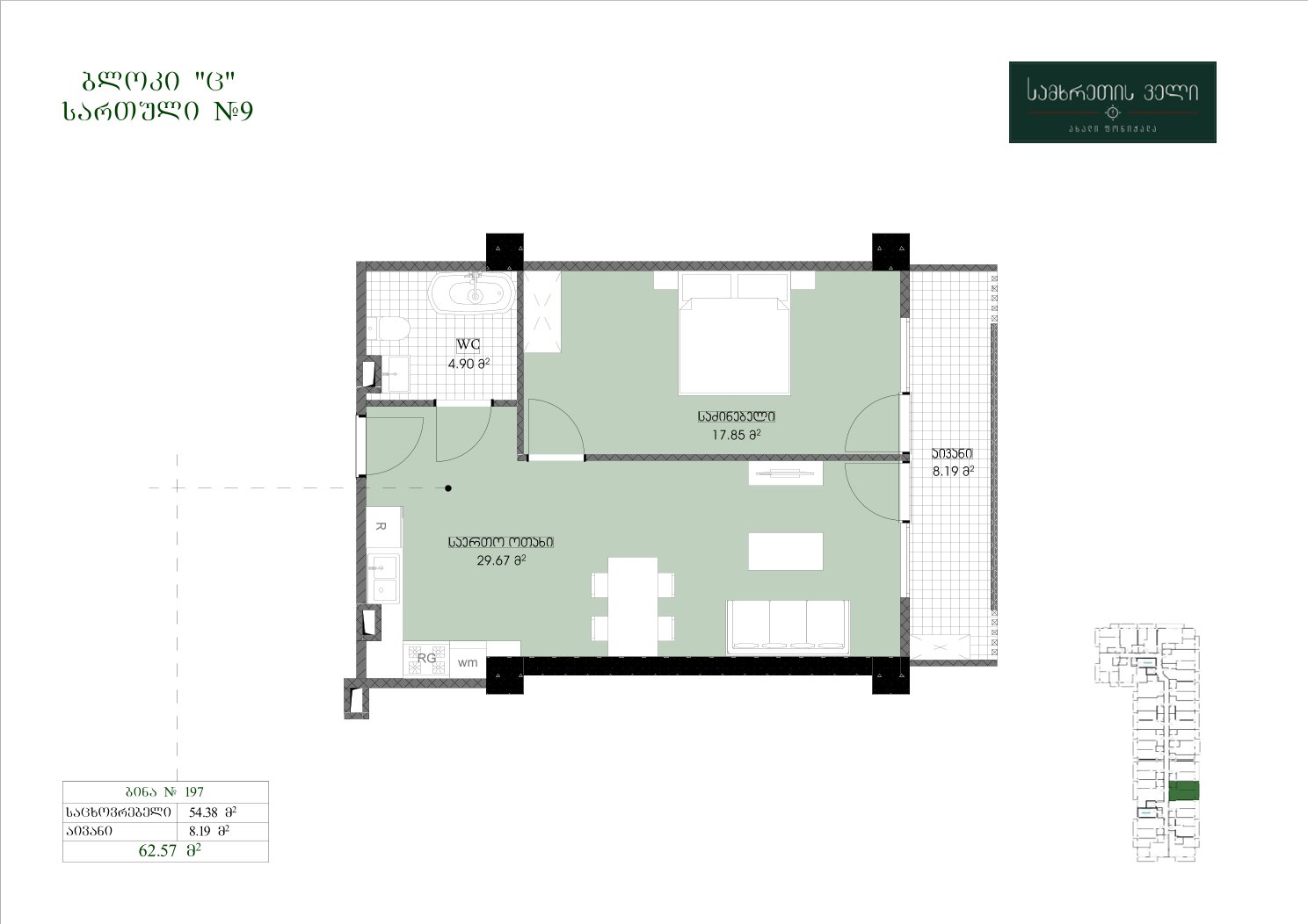 62.57 კვ.მ | სართული 9