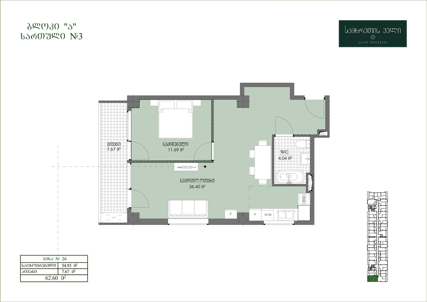 2.მისაღები ოთახი/სტუდიო: 36.40 კვ.მ