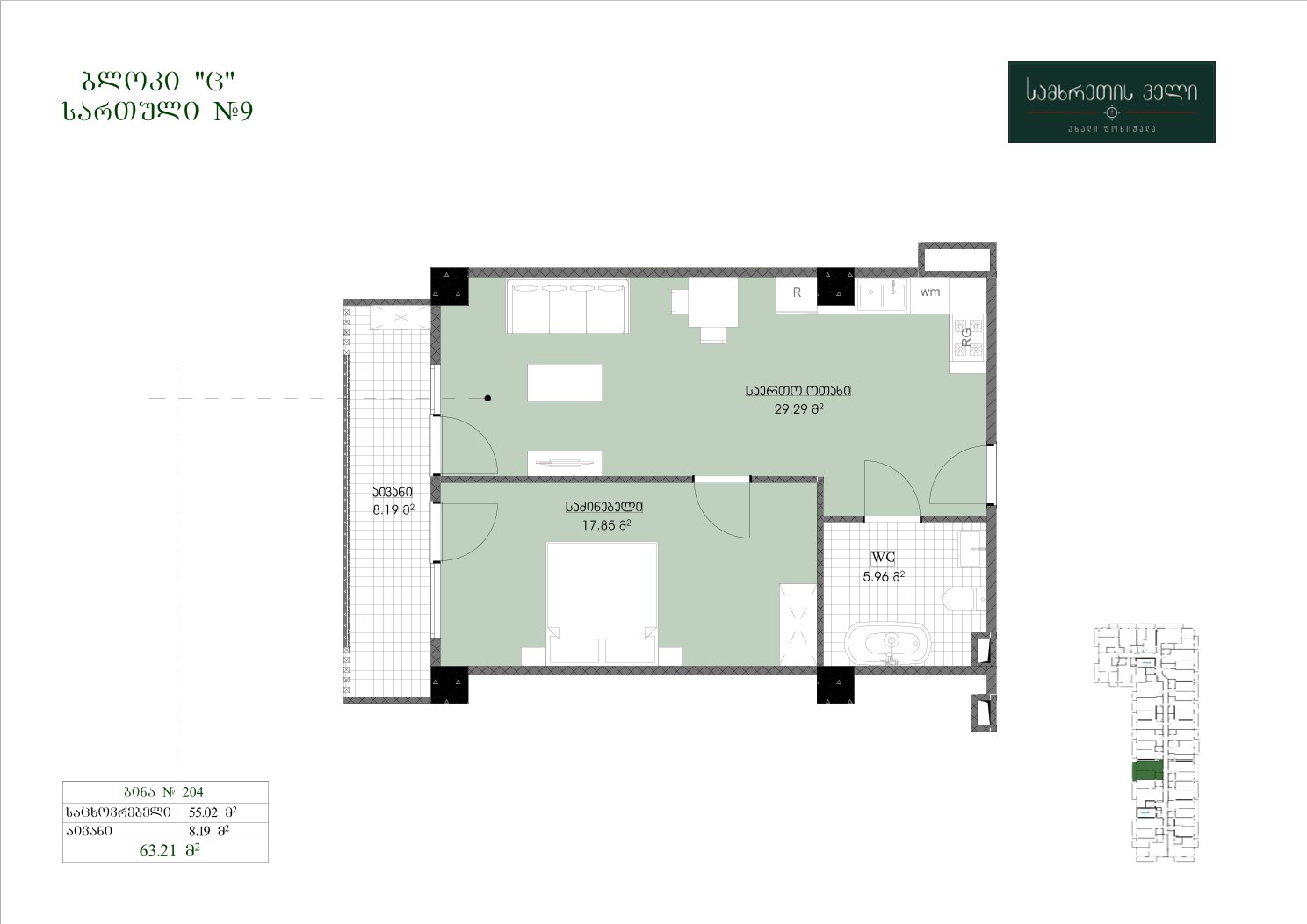 63.21 კვ.მ | სართული 9