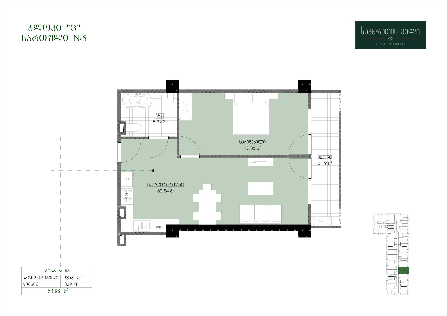 3.აბაზანა: 5.32 კვ.მ