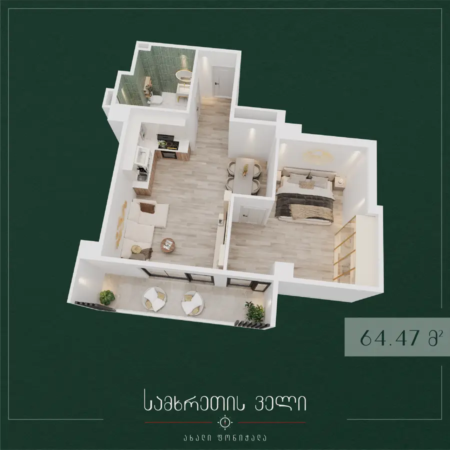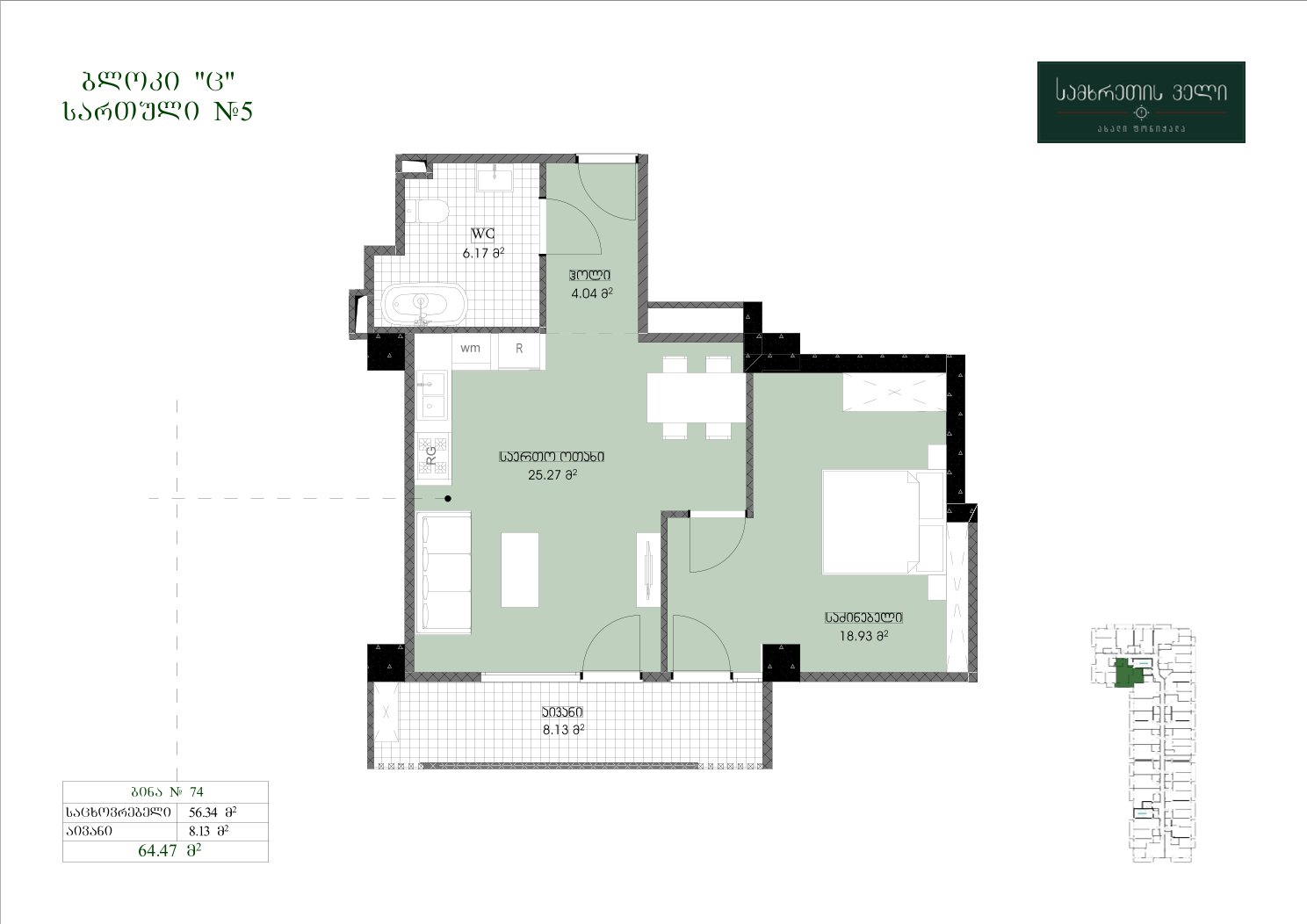2.მისაღები ოთახი/სტუდიო: 25.27 კვ.მ