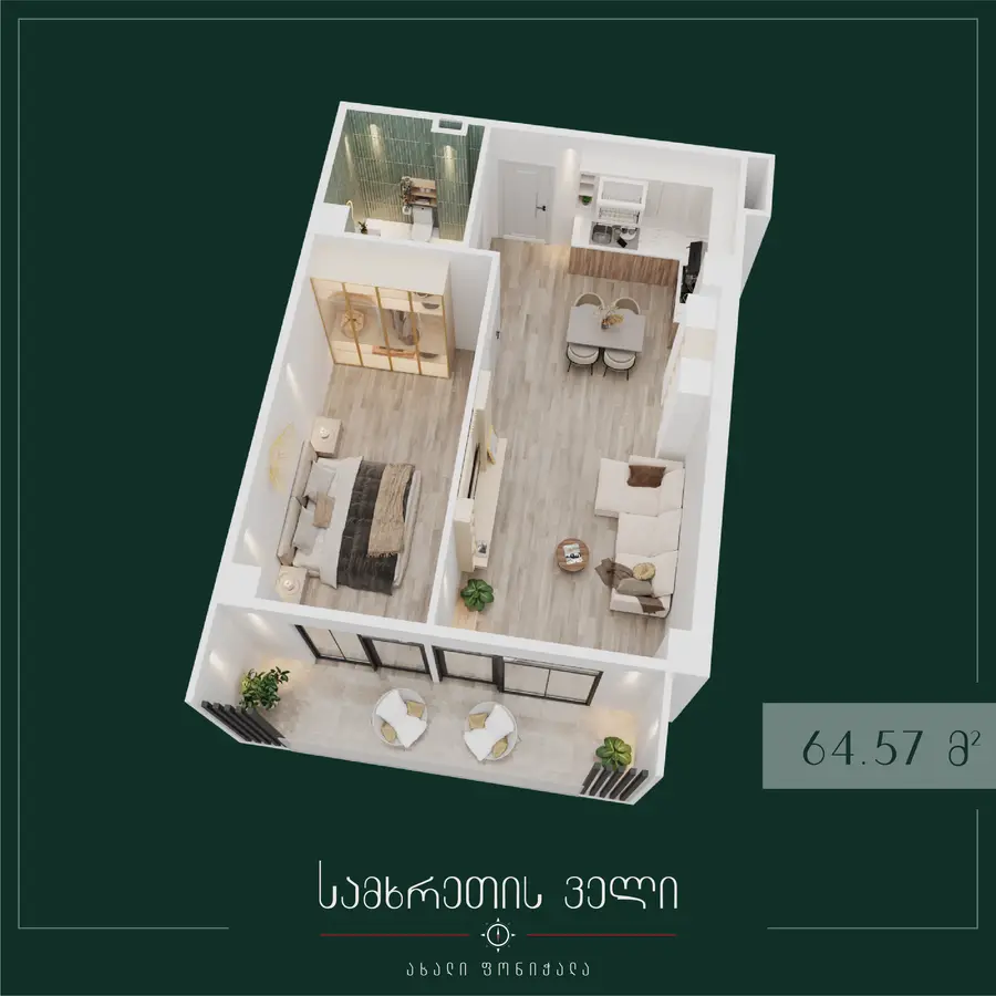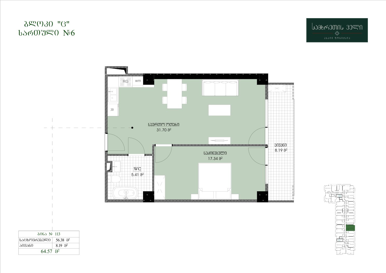 2.მისაღები ოთახი/სტუდიო: 31.70 კვ.მ