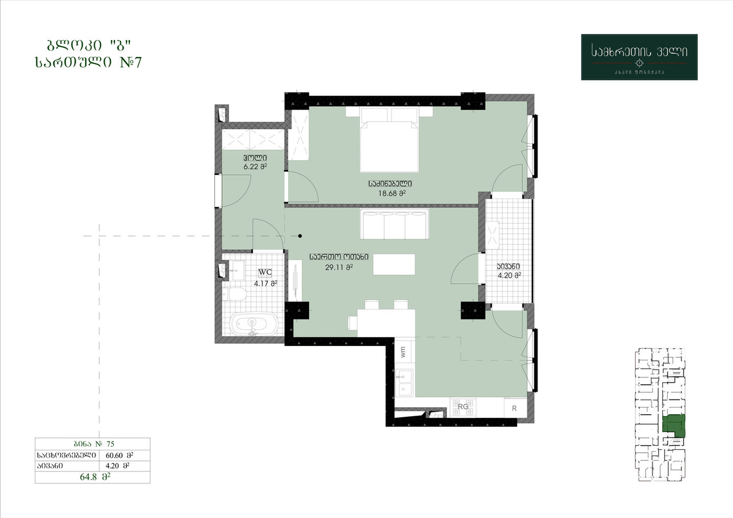 64.8 კვ.მ | სართული 6