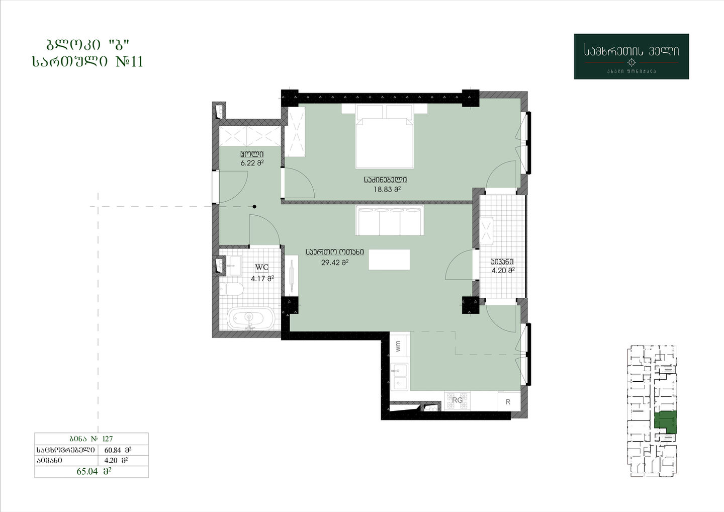 2 .მისაღები ოთახი/სტუდიო: 29.42 კვ.მ