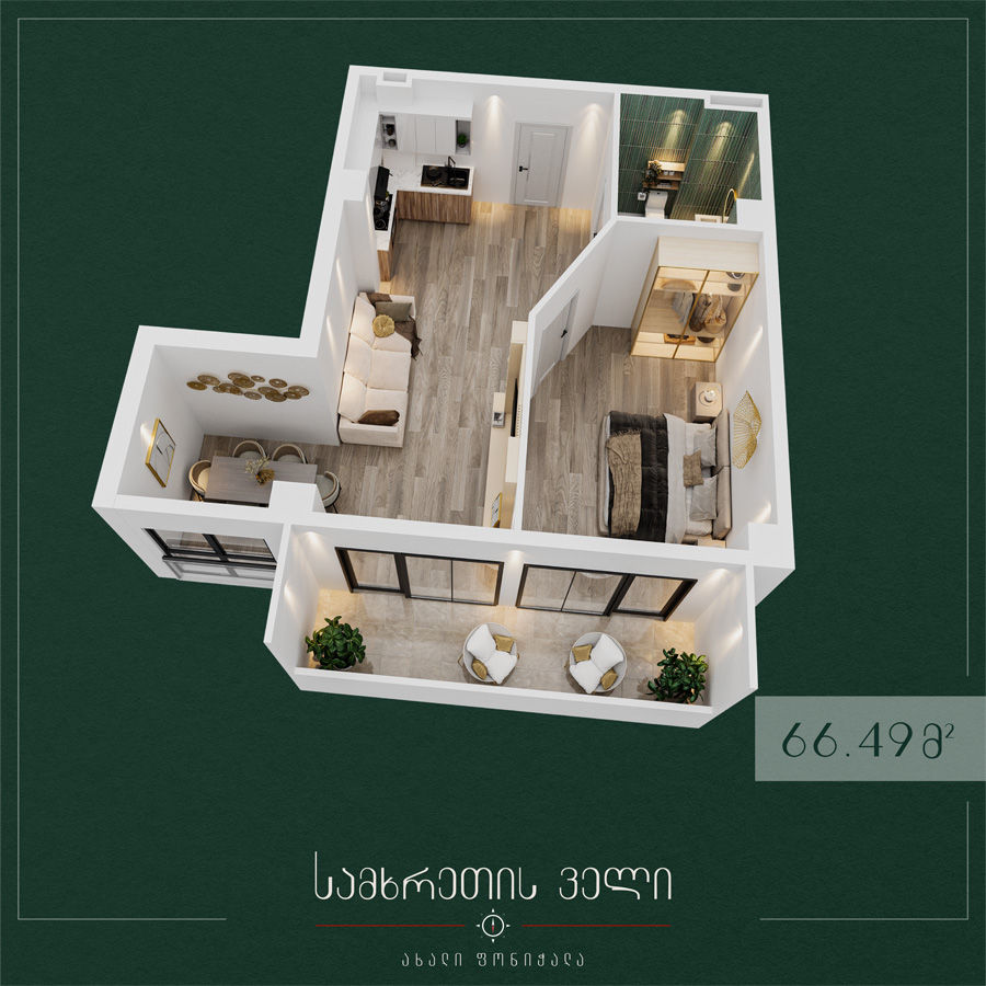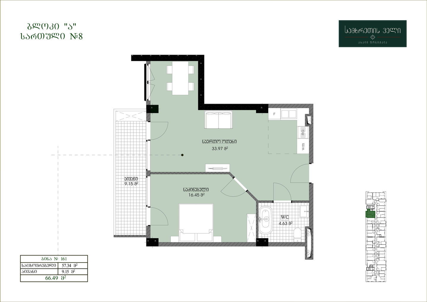 2.მისაღები ოთახი/სტუდიო: 33.97 კვ.მ