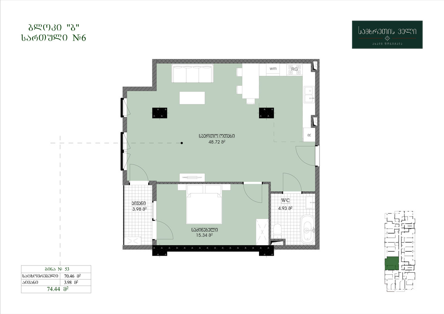 74.44 კვ.მ | სართული 6
