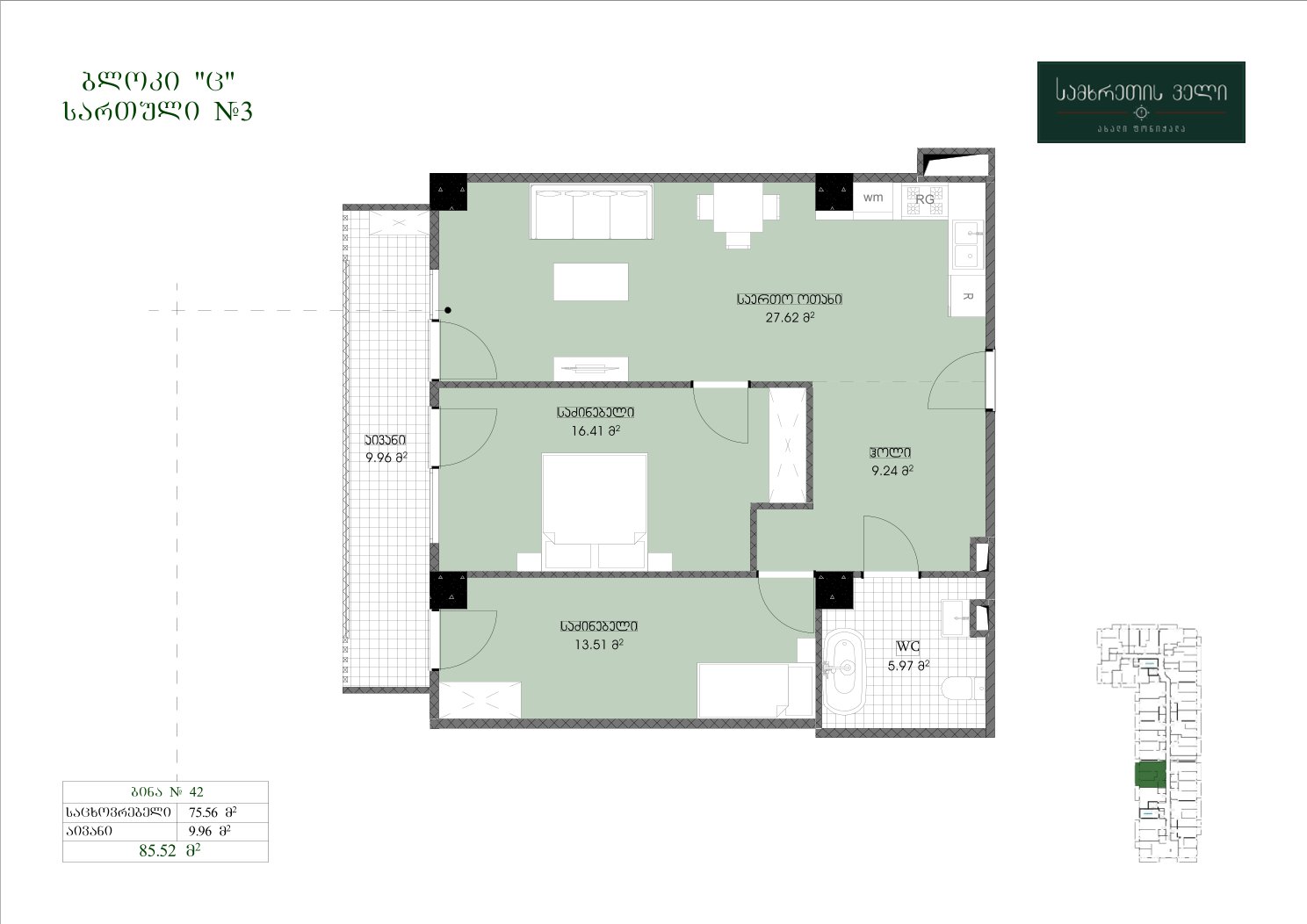 85.52 კვ.მ | სართული 3