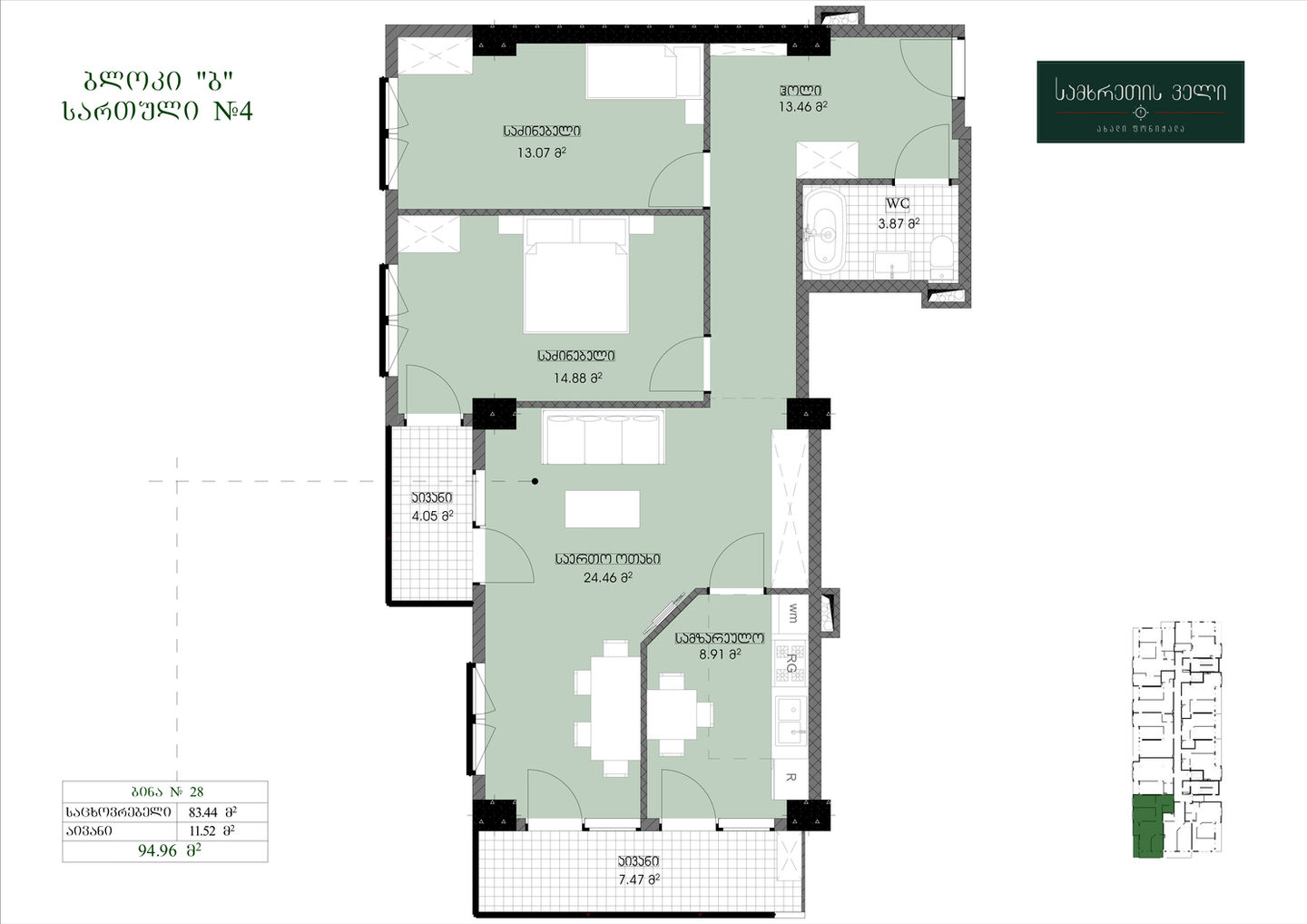 94.96 კვ.მ | სართული 3