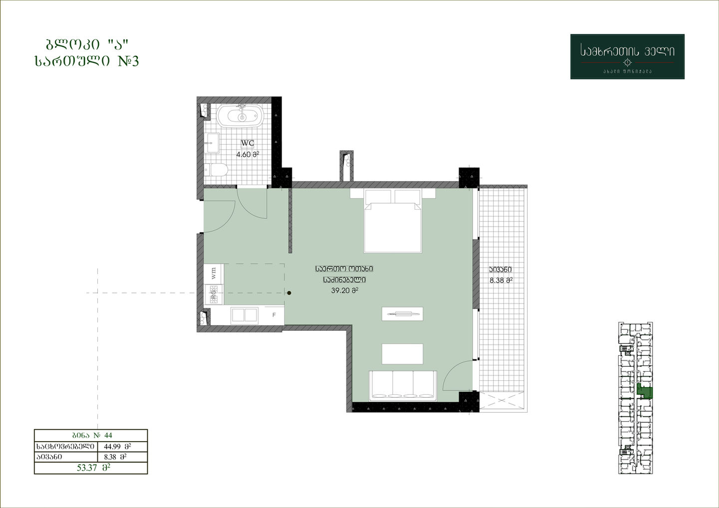 3.Bathroom: 4.60 sq.m