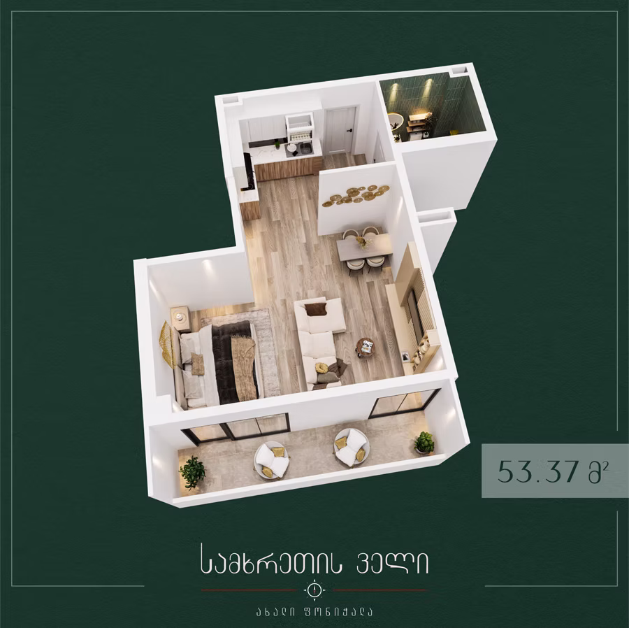 2.Living Room/ Studio/Bedroom: 39.20 sq.m